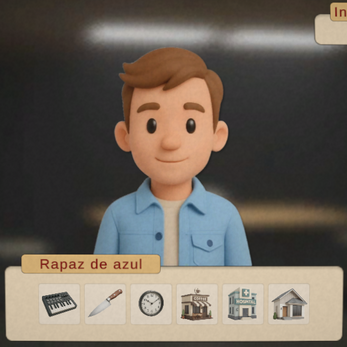 - Você precisa entrevistar os suspeitos para descobrir informações úteis sobre a relação deles com objetos e lugares;